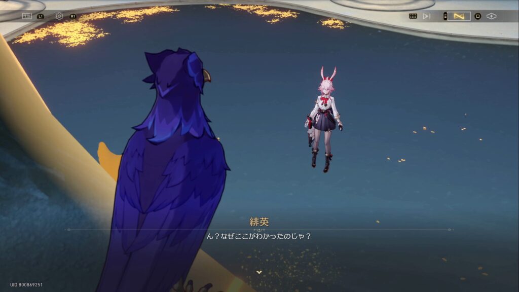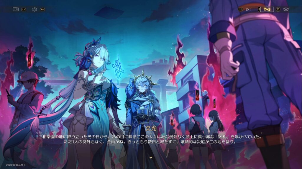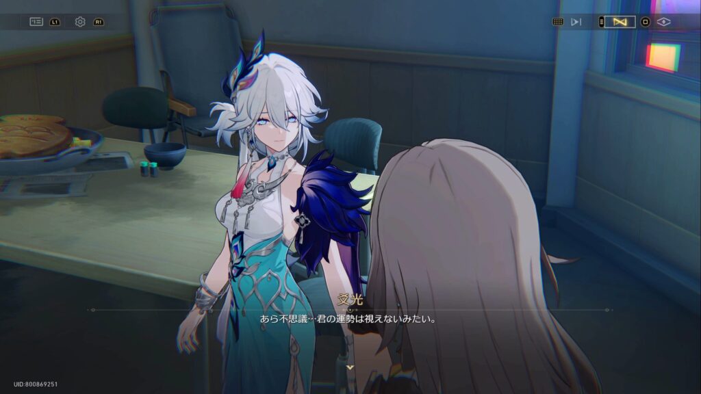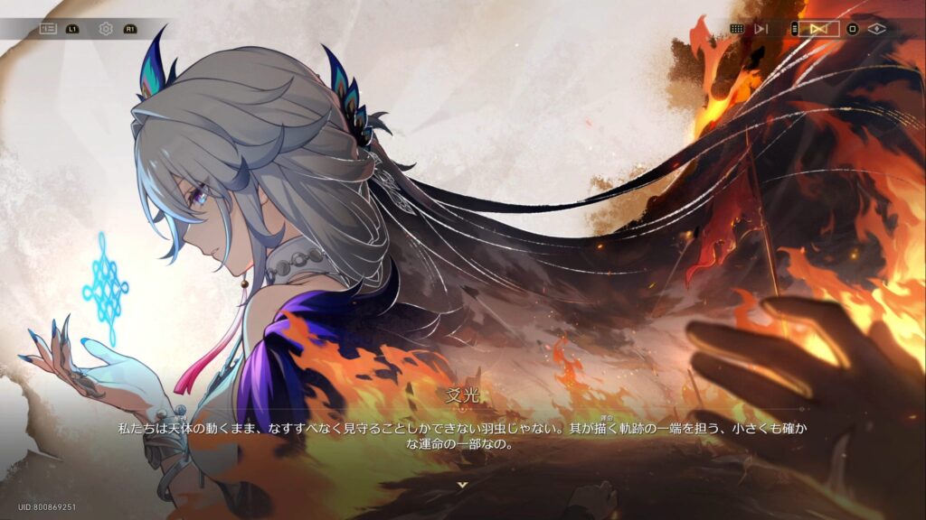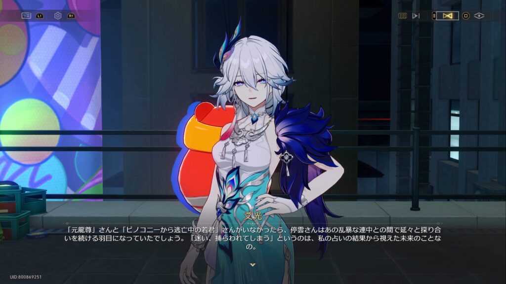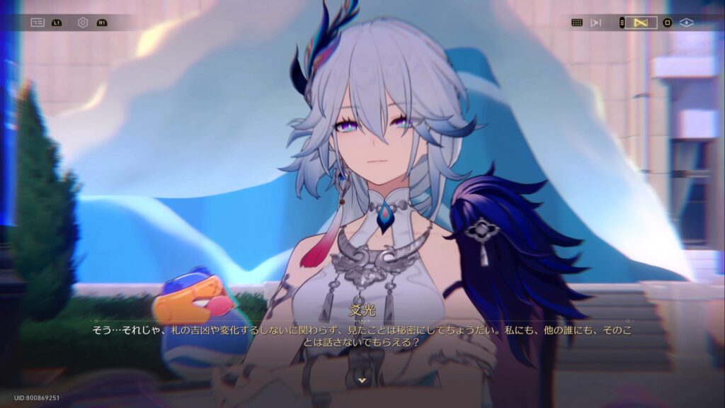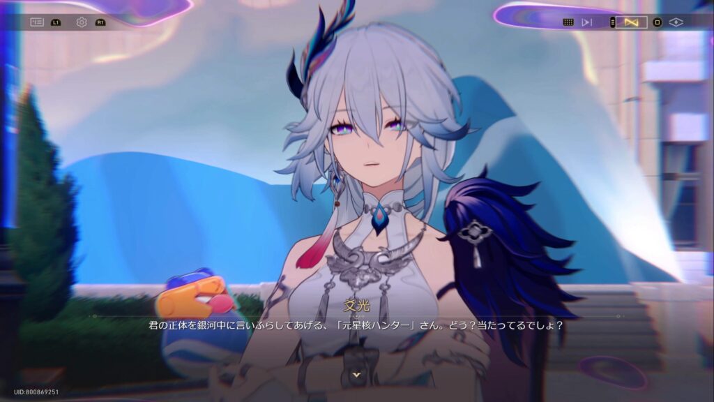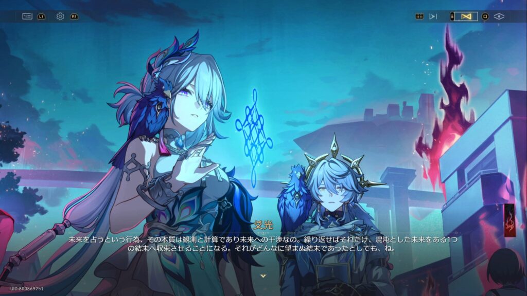• 仙舟「玉殿」の将軍である爻光は、自身の占いにより二相楽園に危機が迫っていること、そして楽園で「帝弓の天将が1人、その命を散らすことになる」との占い結果が出たために景元将軍にかわってやってきていた