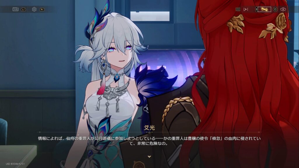 「幻月遊戯」の間は銀河中から賓客が訪れる予定であり、仙舟「玉殿」からの使節も来ているとのこと。