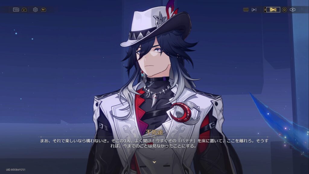 その時、三人を追っていた不死途が現れ、バナナのミームウイルスを床に置いて離れるように指示をした。