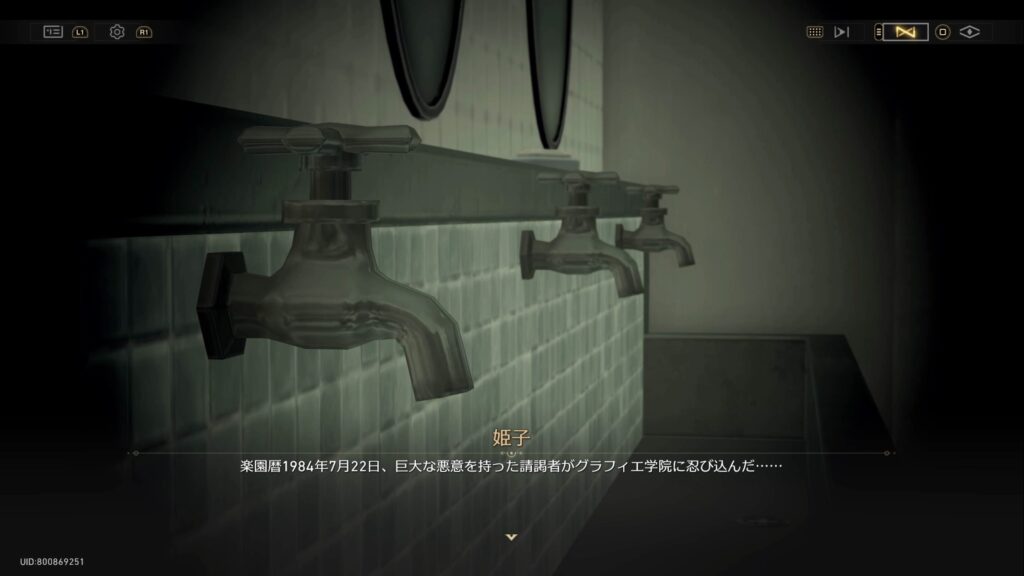 楽園歴1984年7月22日、ある請謁者がグラフィエ学院に忍び込み、学校に残っていた22人の生徒を殺害、その後鳩川区でも146人の死傷者が出た。