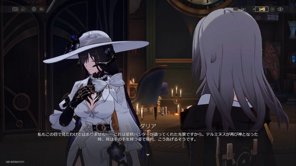 エリオの脚本によれば、コンスタンス(ダリア)が絶滅大君「須臾」になり、「記憶」の星神を壊滅させる可能性がある。