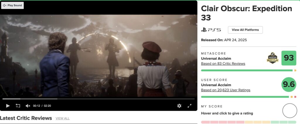 Steamでは「圧倒的に好評」(5,004件中95%が好評。2025年9月時点)、メタスコアは93と脅威の数字となっています。