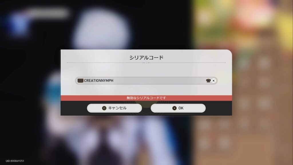 「英雄の変数」を所持していない場合は、シリアルコード「CREATIONNYMPH」を入力するとメールで届きます。