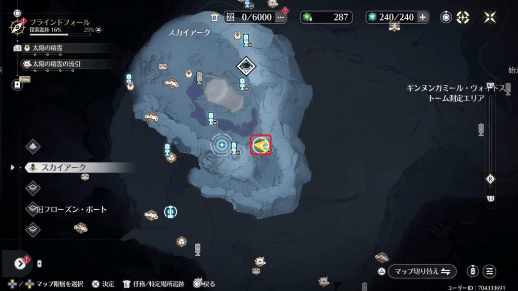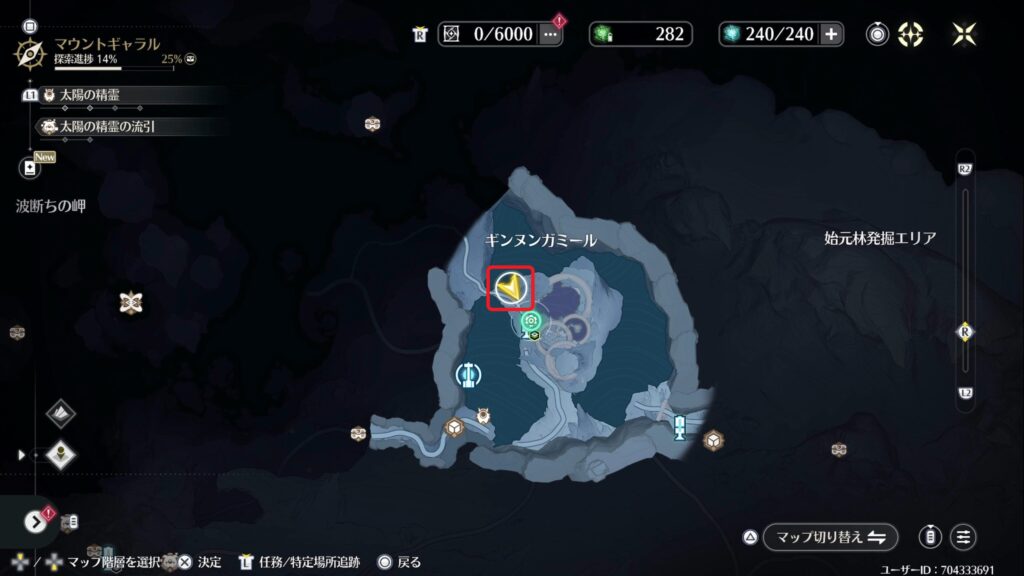 マウントギャラルにいる研究員に話しかけ、測定器を起動すると痕跡が出てきます。