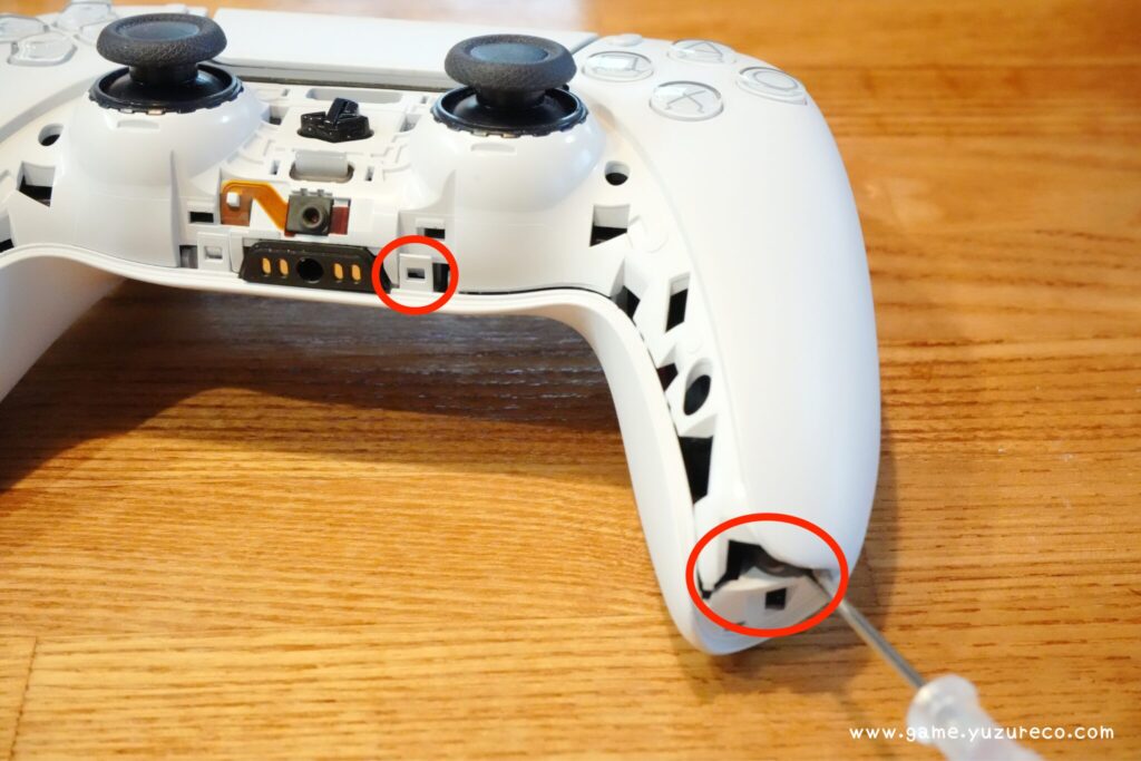 マイナスドライバーはコントローラー本体を傷つけやすかったので、できれば他の差し込めるようなものが良いかもしれません。